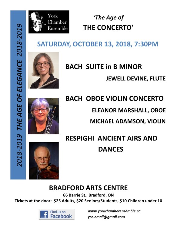 Join us at the Bradford Arts Centre (66 Barrie Street, Bradford, ON) at 7:30pm for “The Age of the Concerto” featuring:
