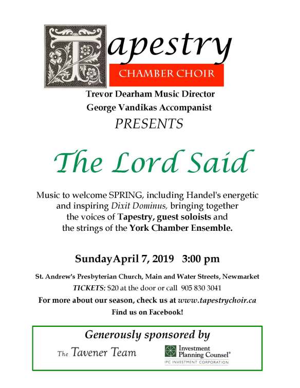 York Chamber Ensemble (YCE) is pleased to be a part of the Tapestry Concert on Sunday April 7, 2019 at 3pm. Location St. Andrew’s Presbyterian Church, Newmarket.