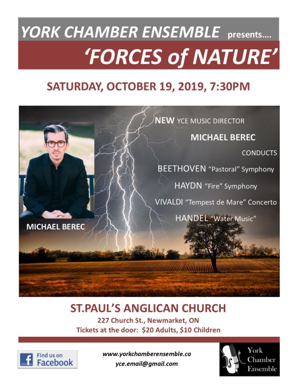 Join us on Saturday October 19, 2019 for “Forces of Nature” 7:30pm