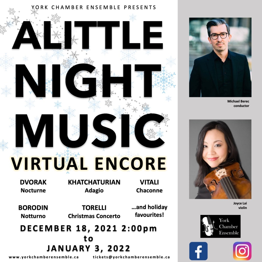 Please support the York Chamber Ensemble by joining our Virtual Encore concert on Saturday, December 18th, 2021 anytime from 2pm until January 3rd, 2022.