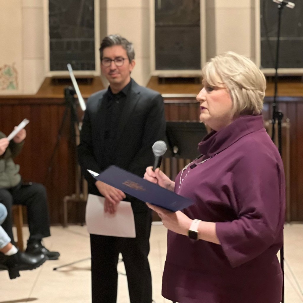 On Saturday, December 3, 2022 at the York Chamber Ensemble’s holiday concert ‘Winter Winds’, local MPP Dawn Gallagher Murphy made a special announcement about the $12,200 Resilient Communities Fund grant that the orchestra received earlier this year from the Ontario Trillium Foundation (OTF).
